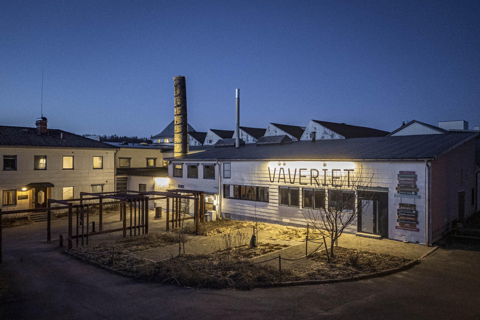 Det gamla väveriet i byn la ner 2012 och idag drivs helt annan verksamhet där. Bageri, pizzeria, cafe, studios, kontor och ataljeér. Det finns också verkstäder för keramik, trä och textil och mycket mer på de 5000 kvadratmetrarna fabrikslokal. Kom med en idé så går det säkert att genomföra här!